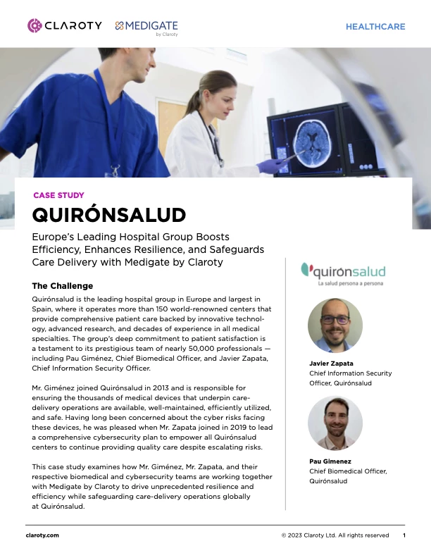 Read the full case study above to learn more about Quirónsalud's key security and biomedical challenges, objectives, and experiences as a Claroty customer.